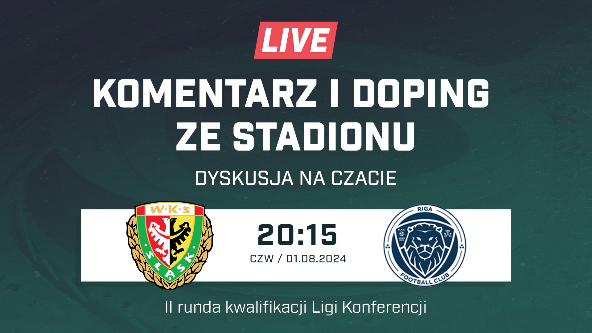 Mecz Śląsk Wrocław - Ryga FC na żywo. Zachęcamy do śledzenia naszych relacji z tego pojedynku II rundy kwalifikacji Ligi Konferencji. TUTAJ przeprowadzimy transmisję LIVE (komentarz meczu, doping i oprawy kibiców, dyskusja na czacie). Alternatywnie TUTAJ przeprowadzimy też klasyczną relację tekstową, w której znajdziecie zapis wydarzeń meczowych minuta po minucie.